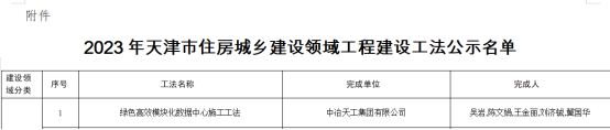 近日,天津市住房城鄉建設委公布了“2023年天津市住房城鄉建設領域工程建設工法”獲獎結果,城建公司裝備公司兩項工法均榮獲該工法。
