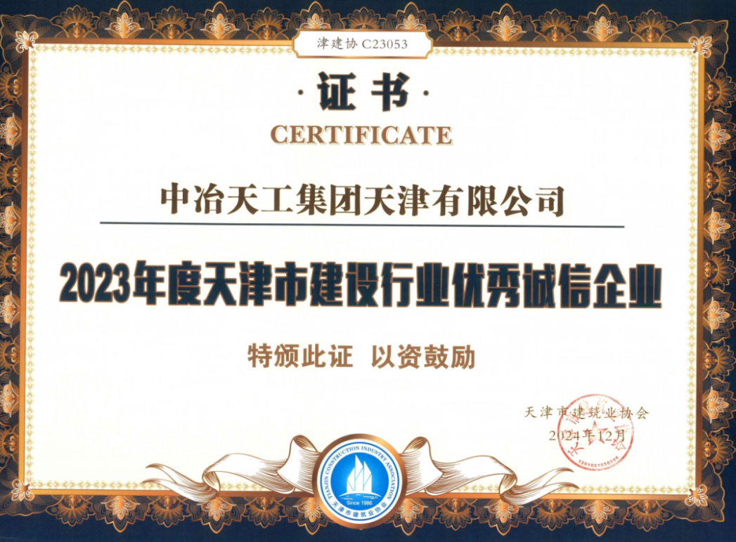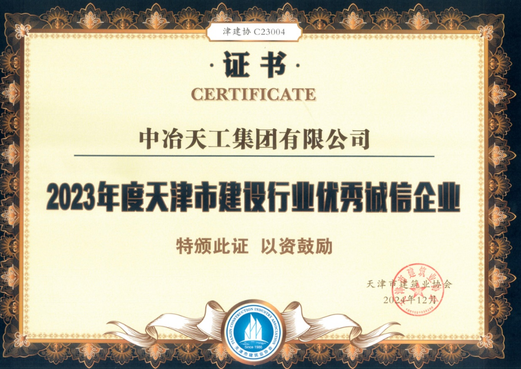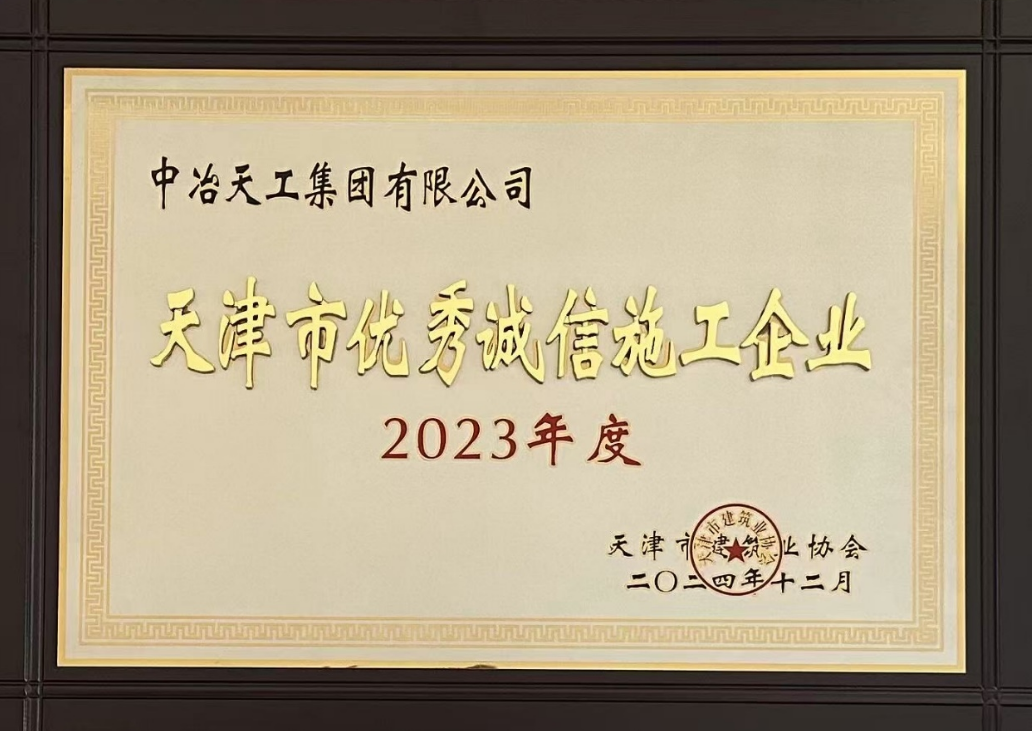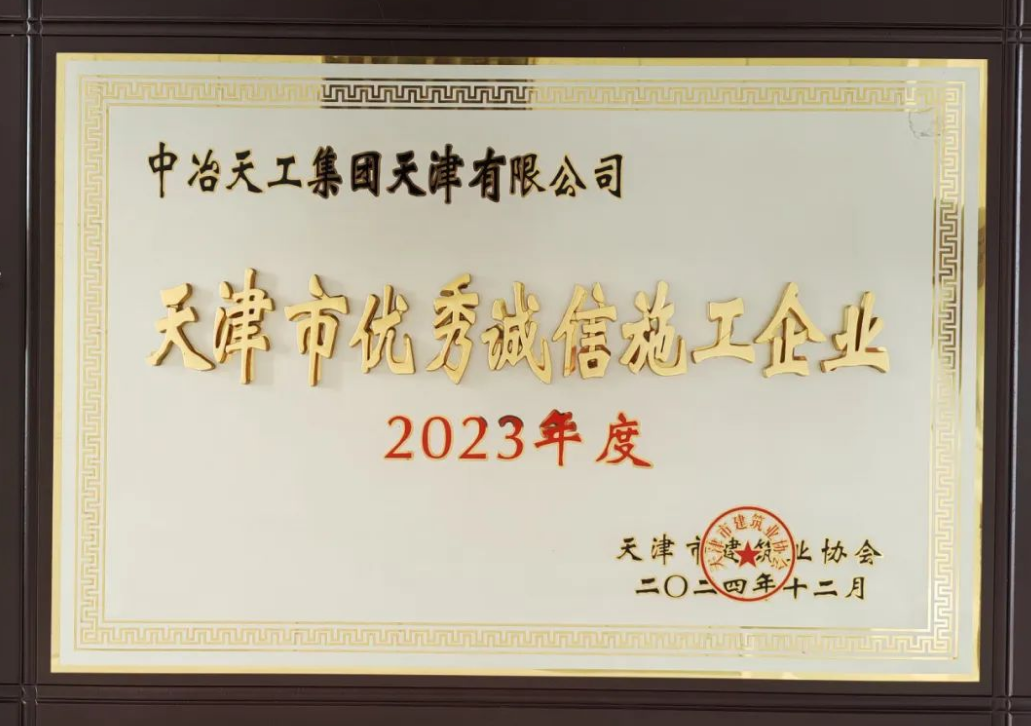 近日,天津市建筑業協會公布了“2023年度天津市建設行業誠信企業”評定結果,中冶天工、天津有限公司憑借在誠信建設方面的突出表現和積極向上的企業形象,榮耀登榜,獲得“2023年度天津市建設行業優秀誠信企業”榮譽稱號。