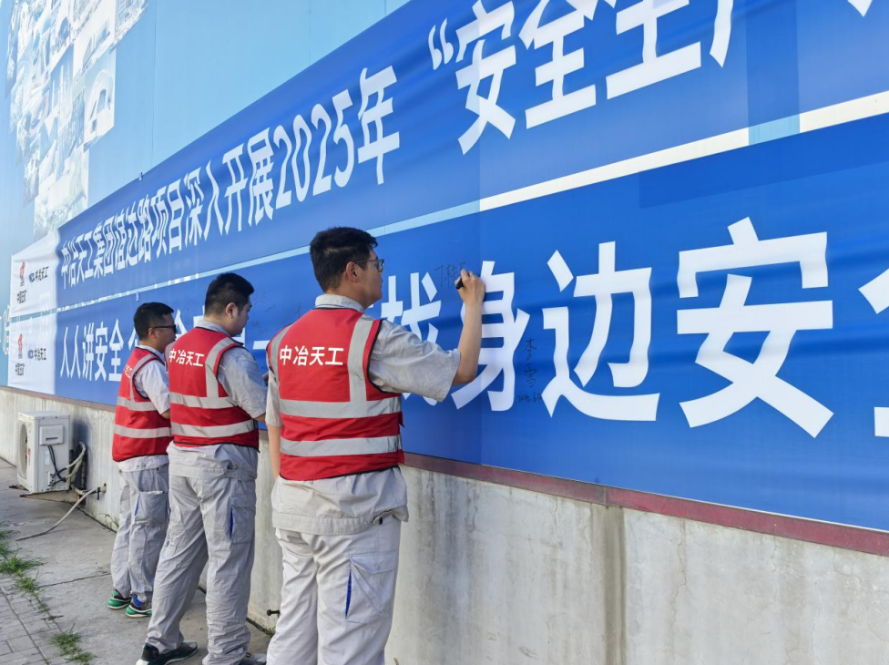 活動伊始全體員工在項目經理的領誓下宣讀誓詞,向社會、企業做出鄭重承諾,隨后大家依次在“安全生產月”活動條幅上鄭重簽名,以簽名承諾的方式表明自己對安全生產的責任與擔當,時刻提醒自己將安全牢記心中,落實到行動中。通過此次活動進一步凝聚了全員安全生產共識,激發了大家參與安全生產工作的積極性。