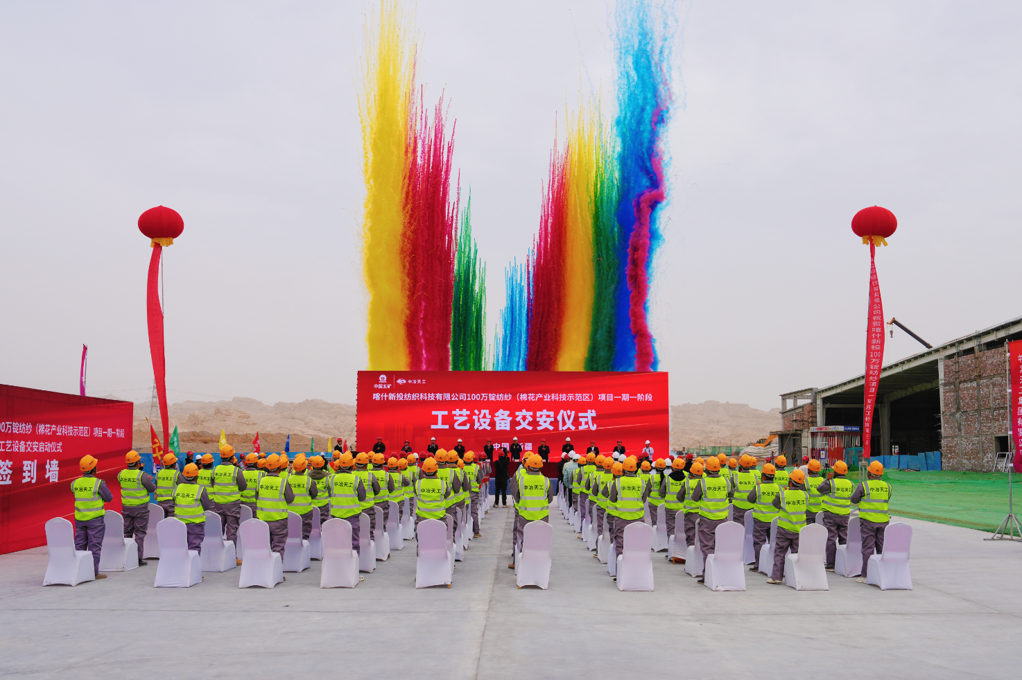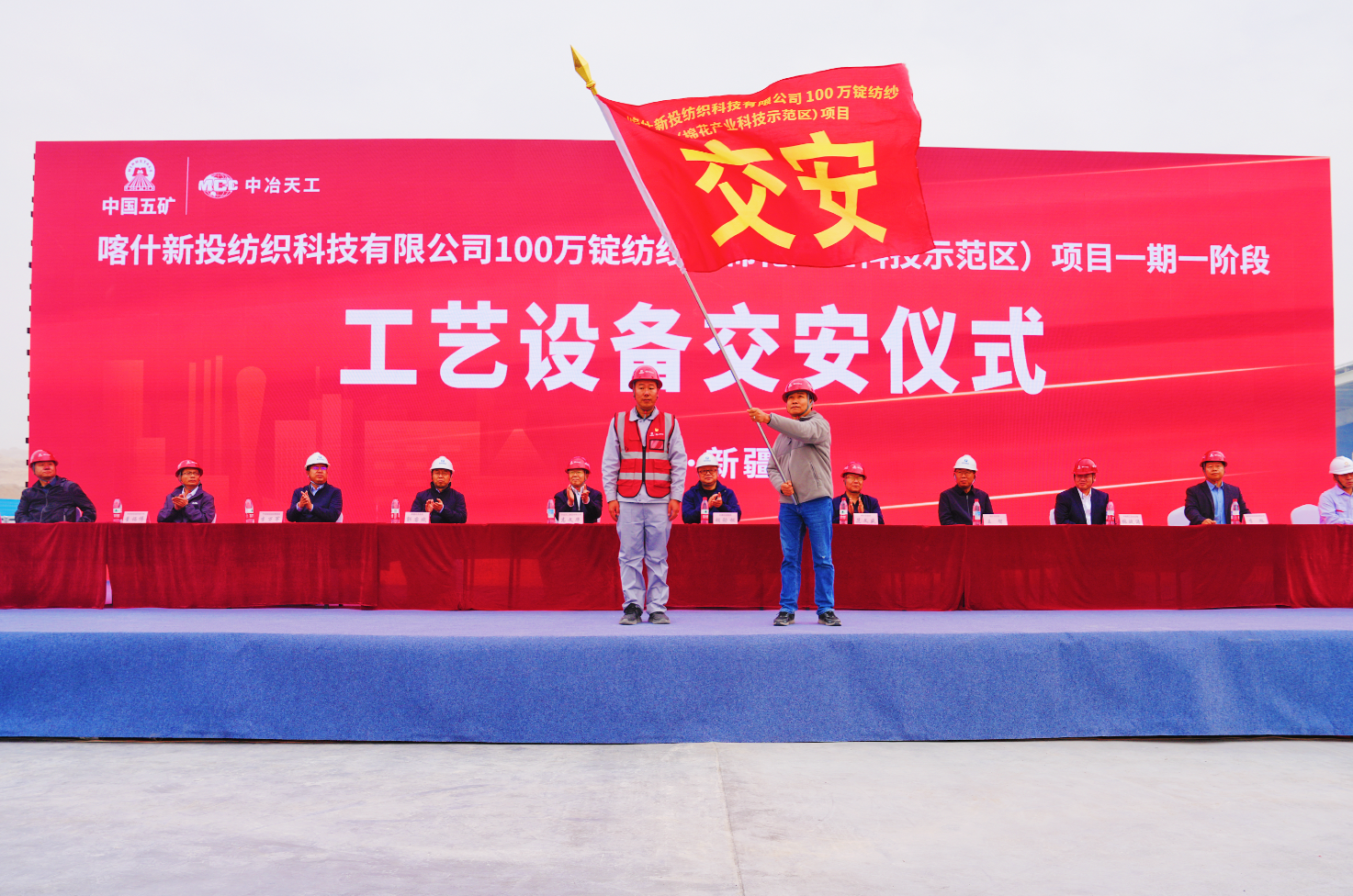 新疆投資集團黨委書記、董事長、總經理胡勁松;喀什市政協黨組書記、副主席范文盛,市委常委、常務副市長王智;中亞南亞園區管委會黨工委書記、副主任李萬軍,相關單位代表以及中冶天工張波濤、喀什項目全體人員參加交安儀式。